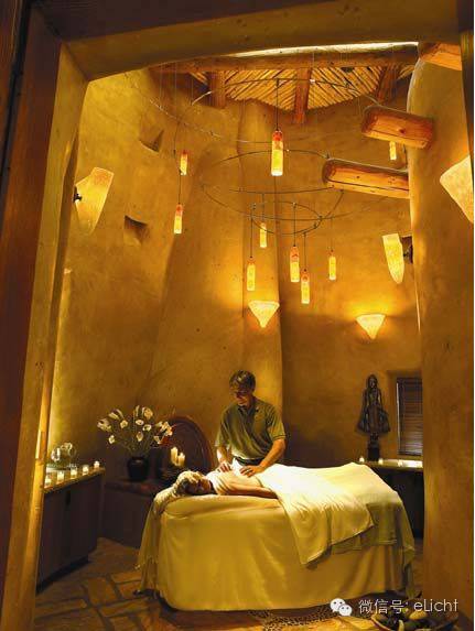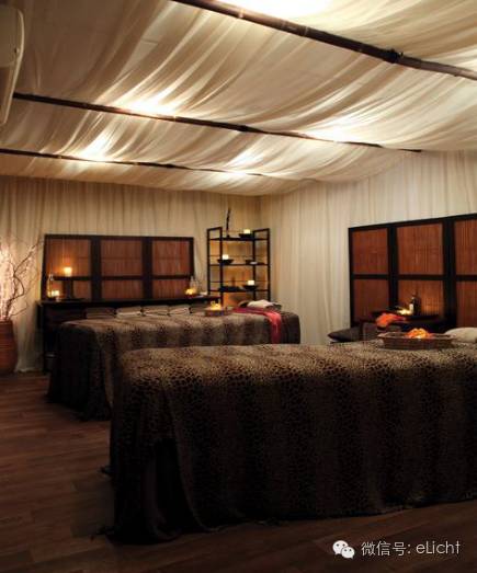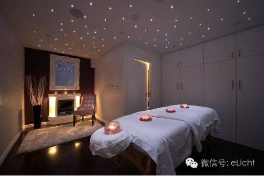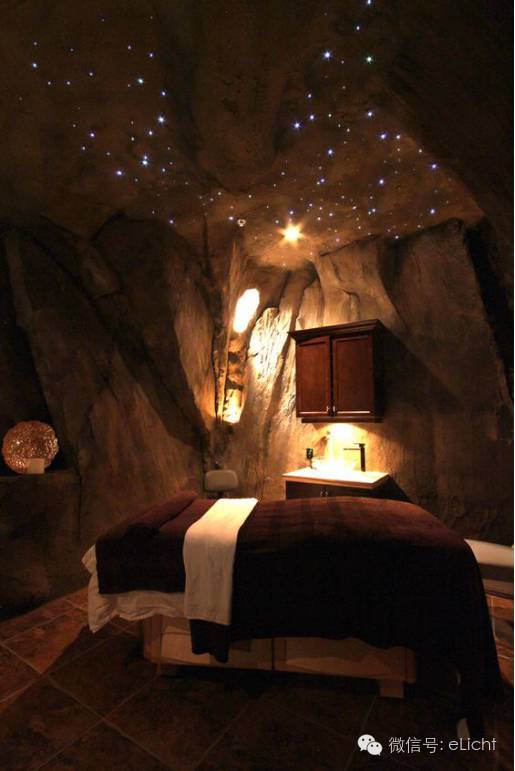 图:乡村星空的光,灯光塑造出来的意境可将人带入一种情结里,不同意境能给人不同心情。比如躺着做美容休息间歇想看天上星空……用小功率单颗小射灯(1W)不规则排布,便能营造出星空的意境。注意哦,是小功率射灯,不能用大功率。