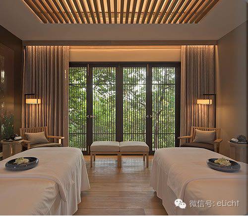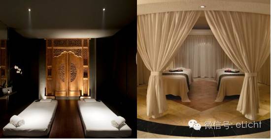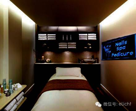操作区实际就是美容区,是顾客护理和放松的场所,私密性较强。这里常会被设置为单人间、双人间,那么这里需要的光应该是从实用、美学、精神功能这三方面去理解,即是可以提供顾客舒适、满足顾客心境、情感及传达经营理念和品牌内涵的光。
