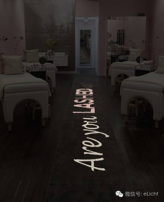 图:梦幻、浪漫的光,LED灯带+地砖灯,灯光随顾客的情绪波动节奏而自行变化颜色,以调节顾客心情。