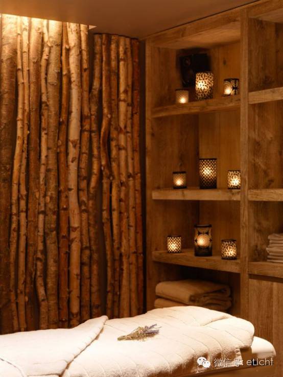 图:原生态的光,灯带+小夜灯,暗藏灯带做装饰照明,结合树干墙壁装饰形成一个故事场景:一人在乡村屋檐下抬头望高树看不到树顶只能看到高处的阳光,营造出一种意境让人在喧嚣的尘世里享受内心的宁静,倾听内心的声动。小夜灯做点缀增加情调。