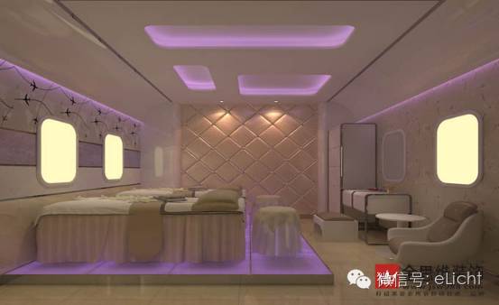 图:遐想的光,有时候现实总是不那么理想,没有太阳光也没法做光幕背景墙,只能在头顶的天花布道蓝光,遐想下蓝天。小型天花不能开天井,但可以用蓝色LED灯带照亮,给人以清爽的同时可联想到蓝天,当然也可天花板直接贴蓝天白云贴纸但我不敢保证效果好哦。