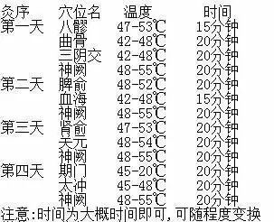 外阴白斑艾灸处方:1日,灸八髎、曲骨、三阴交各20分钟;2日,灸脾俞、血海各20分钟;3日,灸肾俞、关元各20分钟;4日,灸期门、太冲各20分钟;以上穴循环灸,每日加灸神阙穴20分钟,再每日用艾条悬灸病变部位。