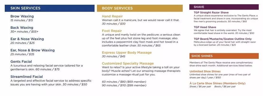 ▷The Gents 针对男士提供的“一站式”美容服务,除了提供最基础的理发服务之外,其服务菜单之中还包括皮肤护理、身体按摩、剃须服务以及擦鞋服务等。同时,为了让服务体系化,The Gents还将服务交叉打包,设置了3 Course套餐、5 Course套餐、7 Course套餐和理发专属套餐。