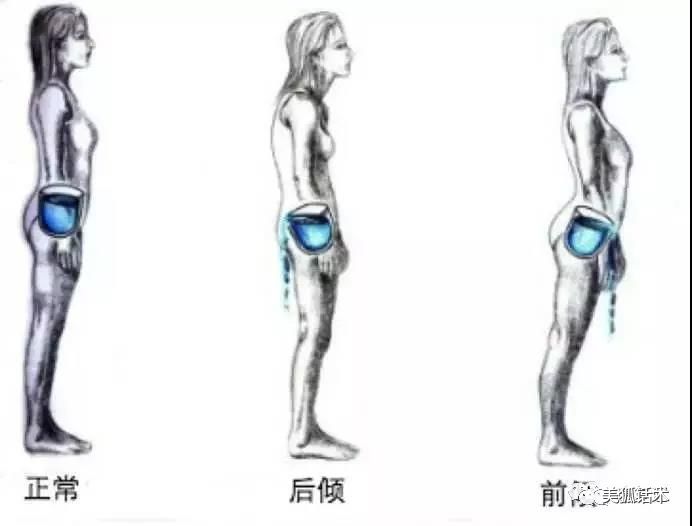 骨盆前倾:会引起臀部后凸,小腹仍旧前凸,腹部下垂,臀大且宽。