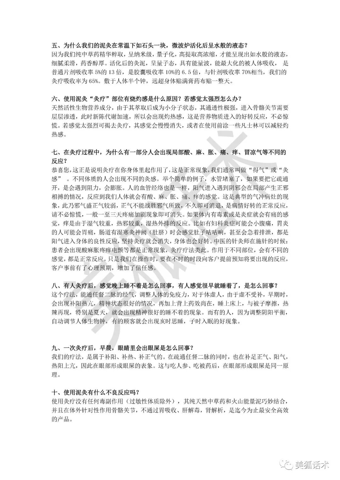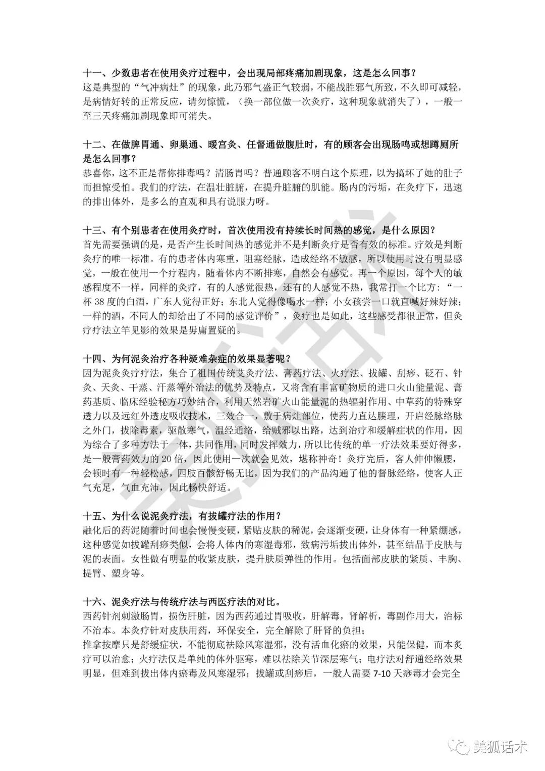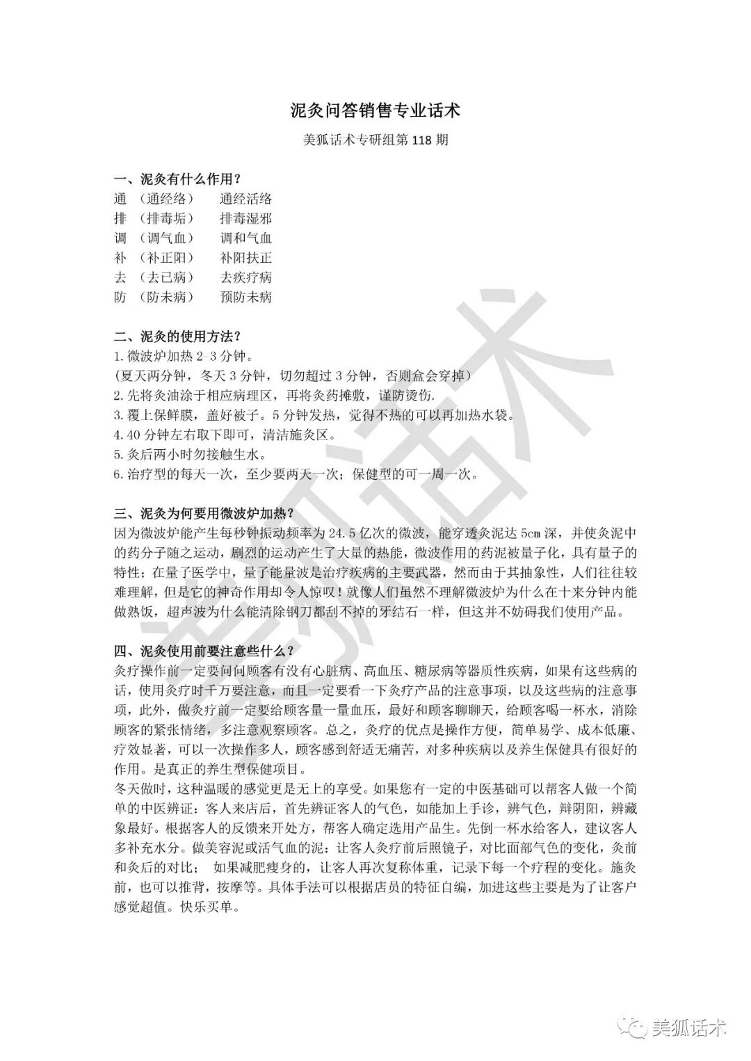 泥灸问答销售专业话术23问 美狐小天使 1,286 次阅读 泥灸问答销售话术美狐话术第118篇– 2019 –June 17 想学习更多话术信息欢迎关注美狐话术训练营每日话术讲解每周话术训练营 很 高 兴 认 识 你