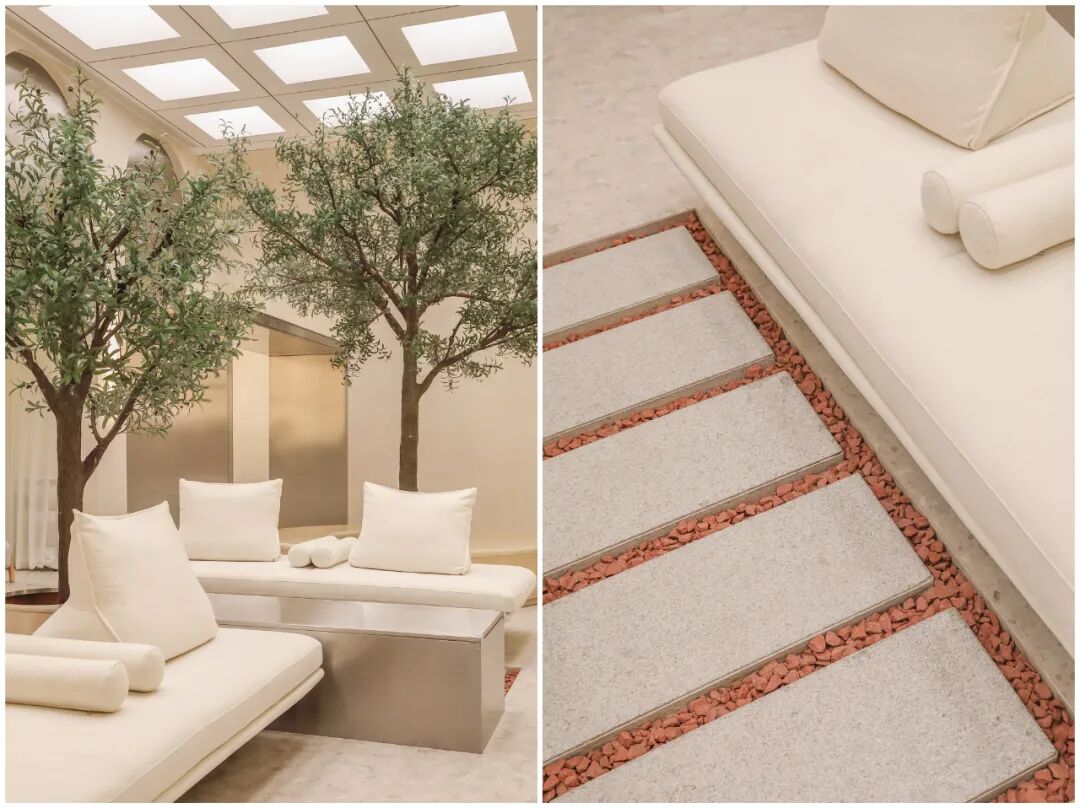 ▷ 美容服务区是围绕中心庭院设立的内部区域,分为悬空冥想室、中心庭院、饮品区、美甲区、美容区。