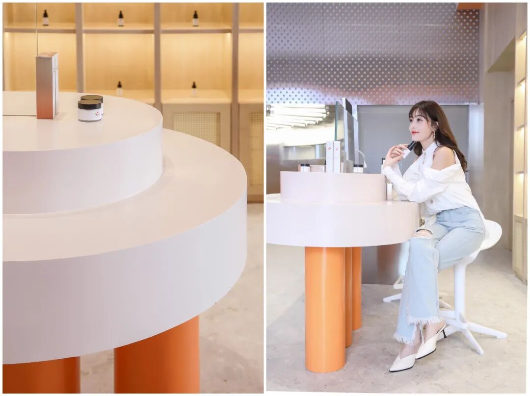▷ 零售区末端设立相对独立的检测区+调配区,通过多种测试仪对客户的面部、身体进行精准测试评估,在评估结束后配置专属的护肤产品。