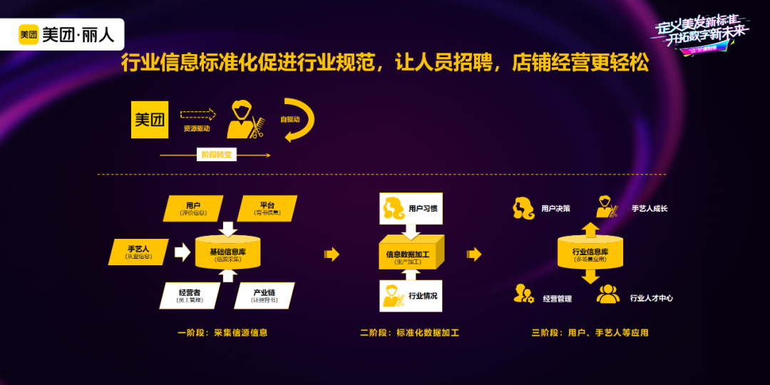 ▷ 同时,针对美业高级及以上发型师人才缺少相应标准,美发商户招人难的痛点,美团丽人将联合行业伙伴,通过对多方信息的加工甄别,形成发型师的“数字化履历”,为用户打造多元化的服务信息展示,做深行业标准化的基础建设。