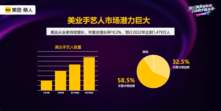 ▷ “未来美团丽人会聚焦三件事:第一件事,打破信息壁垒,建设行业信息标准化;第二件事,助力手艺人成长的发展,满足不同阶段的手艺人的需求;第三件事,针对美发数字化造型师的职业能力成长去建设系统体系。”美团丽人业务产品负责人表示。