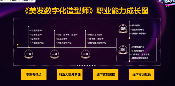 ▷ 根据这份职业能力标准,行业从业者等级可分为分为一级初级、二级中级、三级高级、四级造型技师、五级管理技师等五个级别,从助理发型师升级技术店长或“数字化”运营岗位,不同职业能力等级的从业者,都专门设有对应成长路径参照的评估、培训、考评机制。