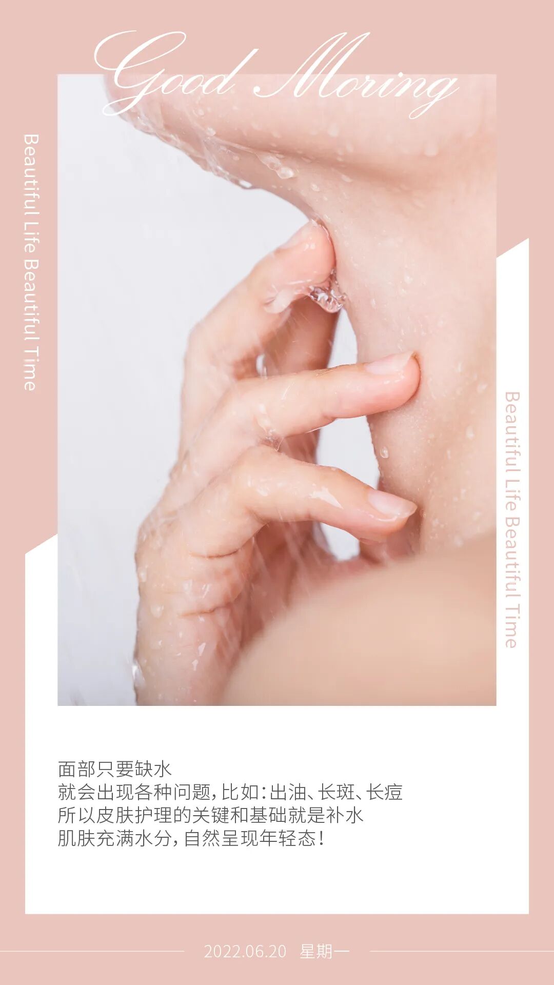 面部只要缺水 就会出现各种问题,比如:出油、长斑、长痘 所以皮肤护理的关键和基础就是补水 肌肤充满水分,自然呈现年轻态!