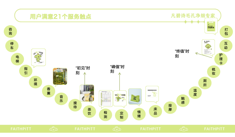 总体来说,凡碧诗的用户体验分为购前、购中、购后、复购四个阶段。每个阶段都设定了明确的场景、目标、行为以及触点等信息。