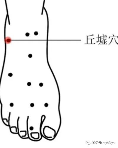 丘墟穴是胆经的原穴,正好位于足底反射区的上身淋巴反射区,主要消除上身的各种炎症。