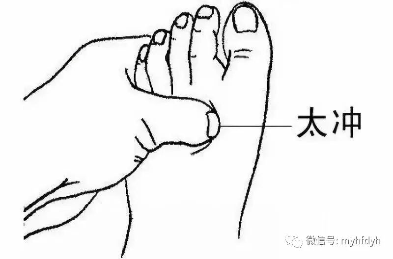 方法:用拇指按揉太冲穴3~5分钟,感觉轻微酸胀即可。不要用太大的力气,两只手交替按压。