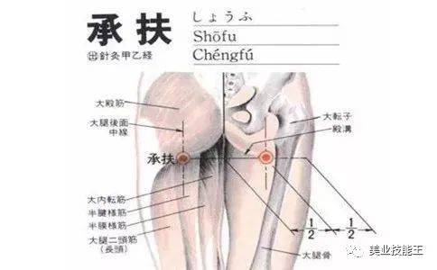 位置:在臀部横纹线的中央下方,位于左右臀下臀沟中心点,这里是性感带最为密集的地方,指压时可以用力些。