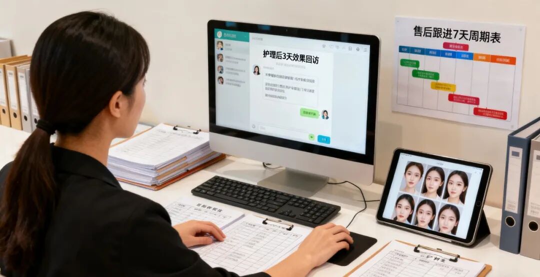 护理后3天:效果回访:主动联系客户,询问“护理后皮肤有没有改善?有没有出现不适?”,根据客户反馈给出针对性建议,比如“您说皮肤还是有点干,可以搭配我们的保湿精华使用,效果更好”;