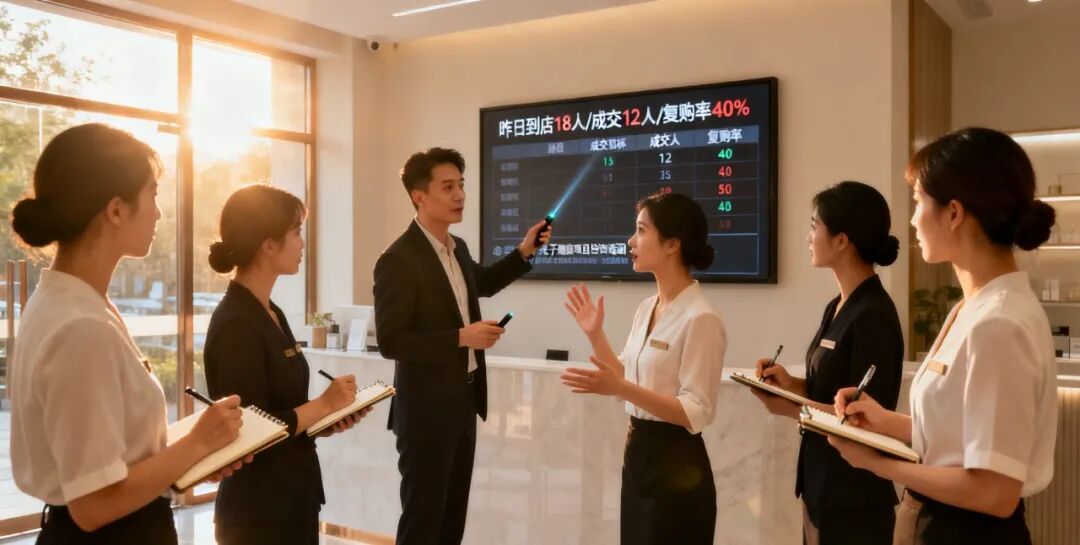 数据复盘(10分钟):用可视化看板展示昨日核心数据——到店客户数、成交金额、复购率、客诉情况。比如“昨日到店18位客户,成交12位,复购率40%,有1位客户投诉‘等待时间过长’”,针对客诉,明确今天的改进措施(如“提前1小时确认客户到店时间,避免重叠预约”);