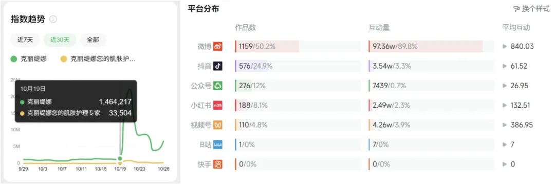 克丽缇娜签约刘诗诗代言后的各大平台指数
