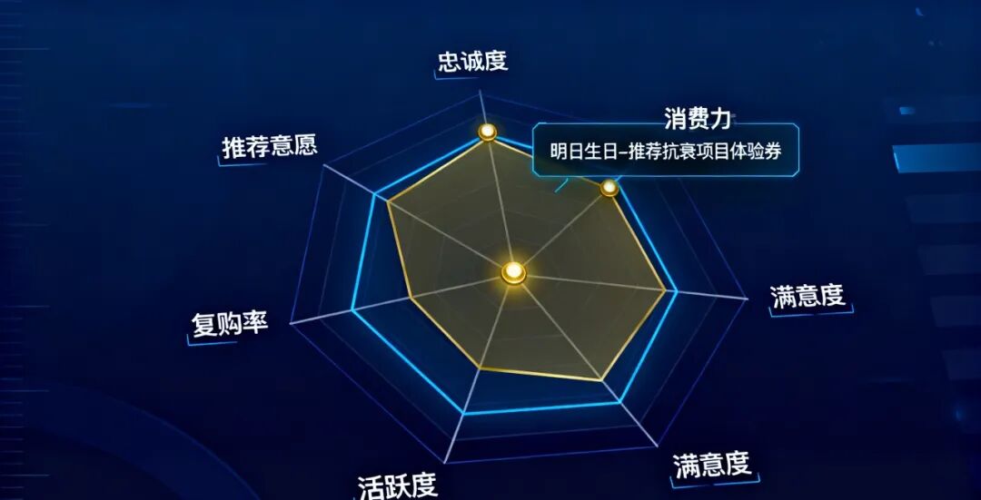 创新工具:「客户生命周期雷达图」—— 通过消费频次、项目偏好、投诉记录等 6 项数据生成客户画像,自动触发生日关怀、项目推荐等个性化服务提醒。