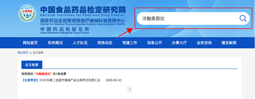 ▷ 以皑皑冷触美容仪为例,其“冷触美容仪”的分类在2020年的相关公告中就已明确公示。鼓励顾客至“中国食品药品检定研究院”官网查询,官网网址:www.nifdc.org.cn,或要求品牌方当面演示其国家官网的备案记录。