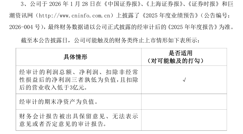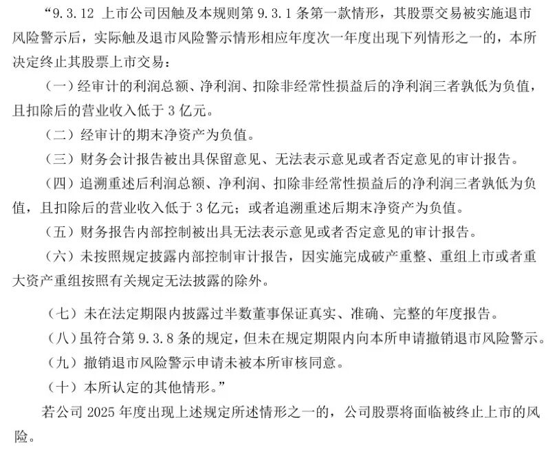 在本次公告中,若*ST金比2025年出现《深圳证券交易所股票上市规则》第 9.3.12条规定的以下情形的,公司股票将可能被终止上市。且至《2025年年度报告》披露前,公司须按照深交所规则要求每十个交易日披露一次风险提示公告。