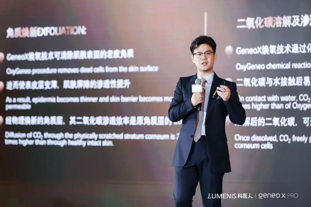 尽管产品研发副总裁ROY先生未能到场,但其视频分享与黄总的后续解读,向行业传递了一个清晰信号:Geneo X PRO的背后,是科医人全球研发体系长期的技术积淀,以及对皮肤亚健康管理趋势的精准预判。