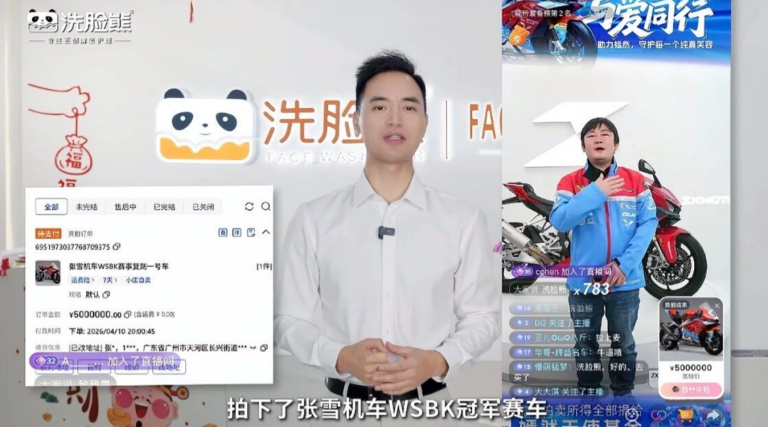 日前,在张雪机车直播拍卖现场,WSBK世界冠军赛车复刻版仅用时45秒,便被竞价至500万元封顶价。拍下这辆天价机车的,并非豪车藏家或资本大佬,而是洗脸赛道头部品牌——洗脸熊的内部员工。与之形成强烈反差的是,这家主营几十元亲民洗脸项目的品牌,年初深陷广东、浙江、湖北、上海等多地门店“跑路”风波,大量消费者近千元储值未消费,陷入退款无门、维权艰难的困境。一边是加盟商闭店、消费者受损,另一边却是品牌方豪掷500万拍机车造势。那么这500万元,洗脸熊到底在“买”什么?