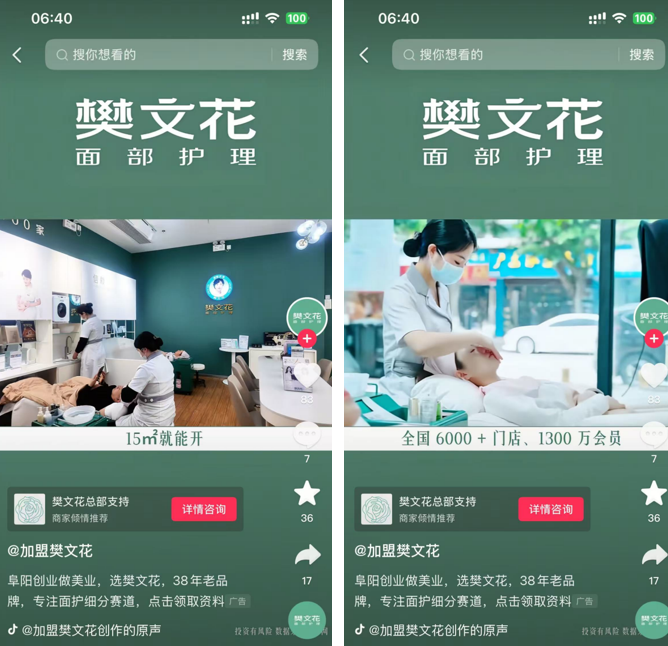 来自杭州某广告公司销售杜磊(化名)表示,如今美业招商高度依赖信息流广告,宝妈、跨界小白是核心投放对象,标准文案模板固定为:品牌实力+总部扶持+小店模型+低投资+快回本,核心目标是让意向客户主动留资。