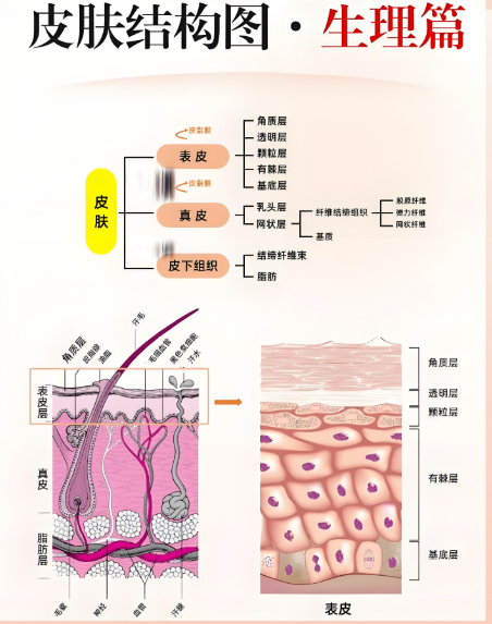 答:基底层包含黑色素生长细胞,黑色素的聚集方式决定了我们皮肤的颜色。