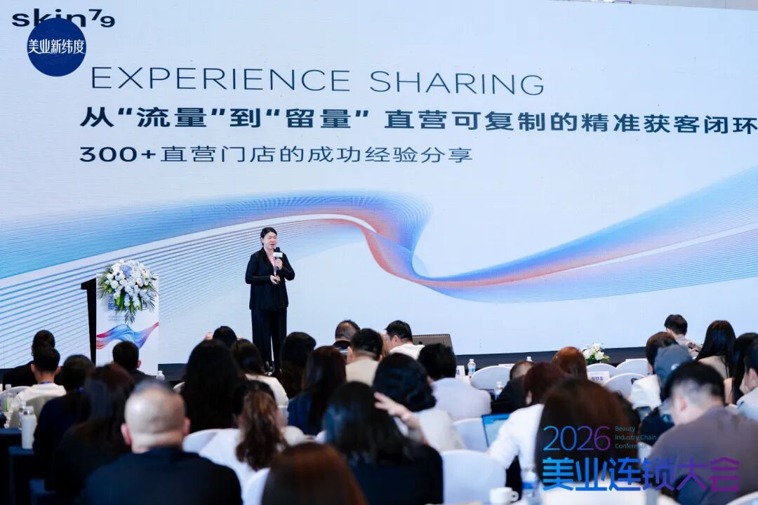 大会现场,skin79集团副总裁吕青介绍,集团的核心获客方式是潜在客户充足的好商圈、更具针对性的准客群、提升护理效果的强效果、线上线下结合的全渠道、统一运营的标准化。